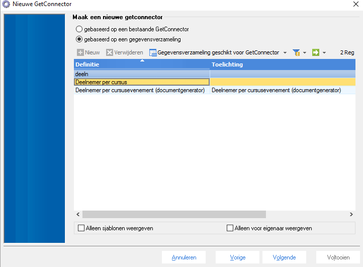 Maak een GetConnector op basis van de gegevensverzameling ‘Deelnemer per cursusevenement’