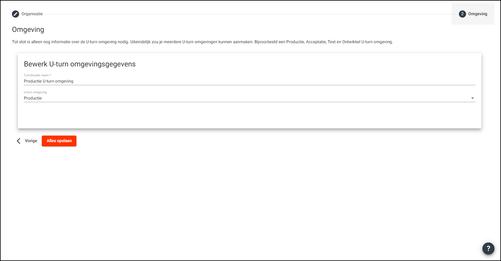 Geef in het tweede scherm de omgevingsgegevens op. Dit zorgt ervoor dat er direct een omgeving aangemaakt wordt. Meer informatie hierover is te vinden op Aanmaken nieuwe omgeving.