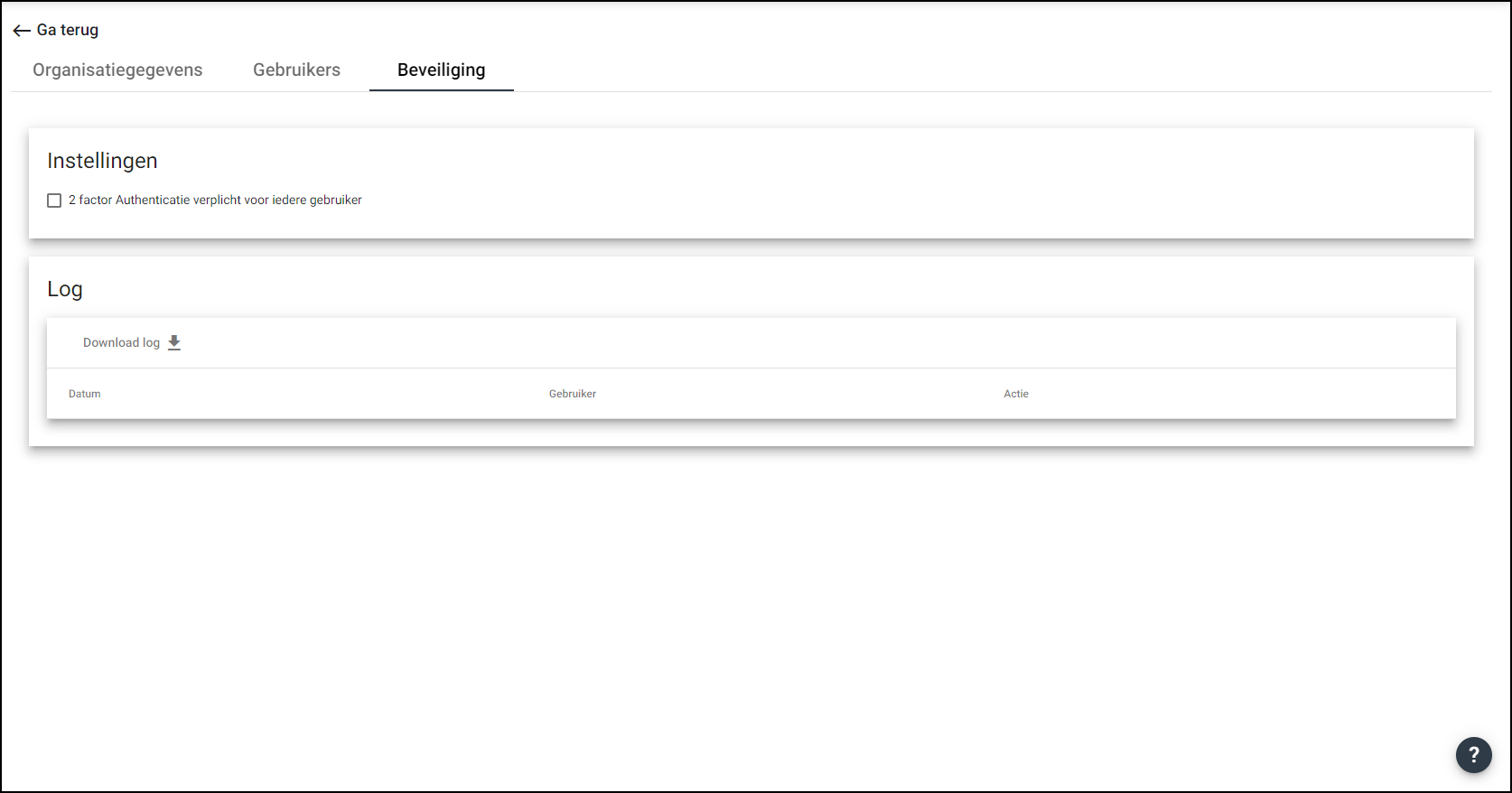 Op organisatie niveau kan worden ingesteld of iedere gebruiker die gebruik wil maken van deze organisatie 2-factor authenticatie ingesteld moet hebben.
