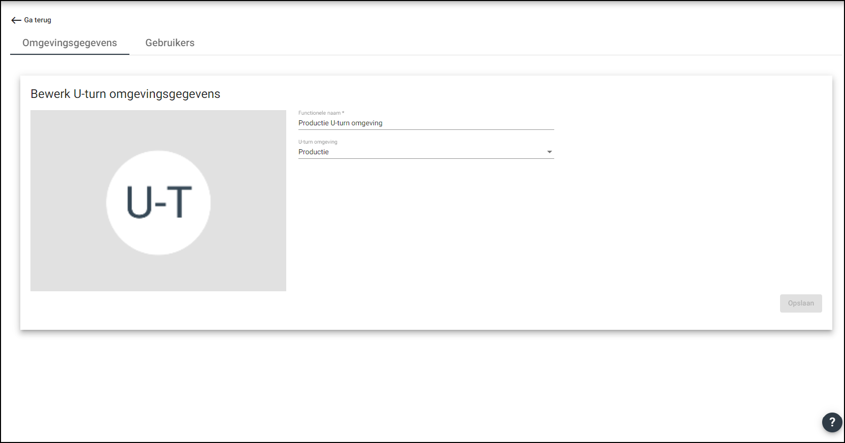 In dit scherm kun je de functionele naam en het omgevingstype (acceptatie, test of productie) aanpassen.