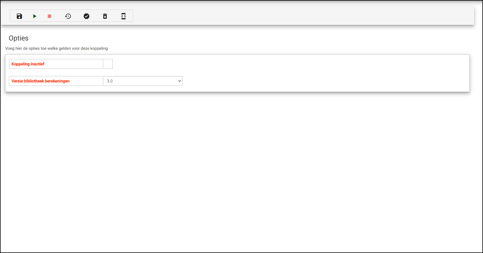 Uiteraard zijn de meeste koppelingen actief. Echter kan het soms handig zijn om (tijdelijk) een koppeling uit te schakelen. Door een koppeling op inactief te zetten, zal deze niet meer uitgevoerd kunnen worden. Dit betekent dat deze o.a. niet wordt uitgevoerd vanuit een groep, schema of loop.Versie bibliotheek berekeningen