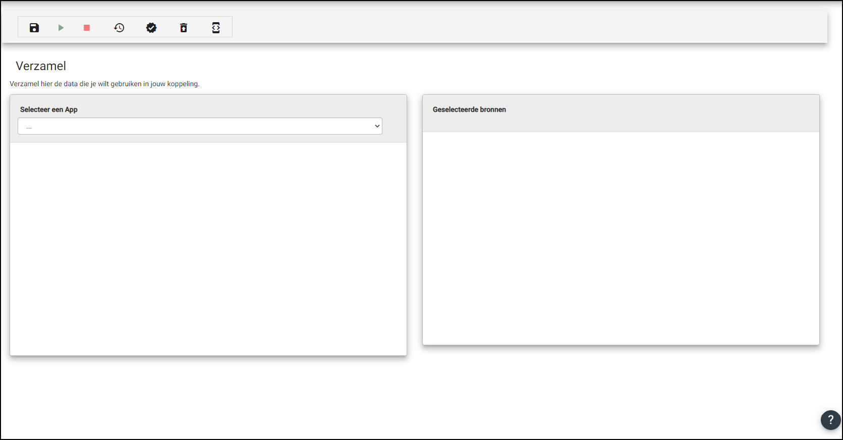 Dit type koppeling ondersteund de algemene functionaliteiten Naam, Parameters, Verzamelen, Bewerken, Schemaen Melding, maar heeft specifieke schermen voor de volgende functionaliteiten: