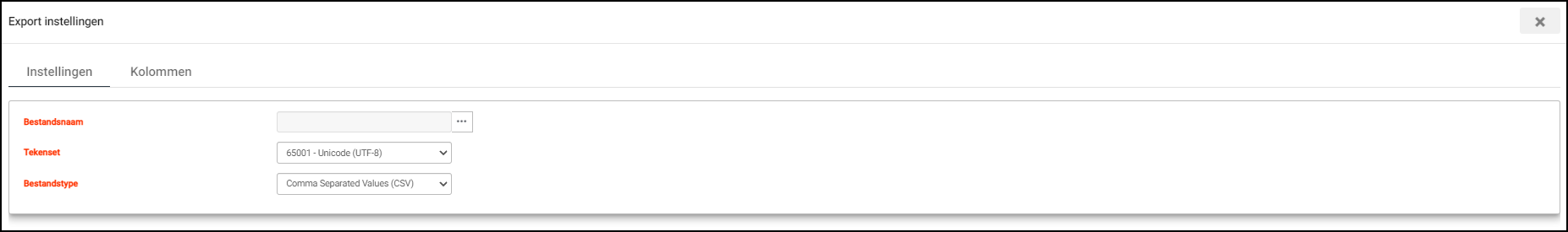 Extensie: Dit is de bestandsextensie. Bv csv.