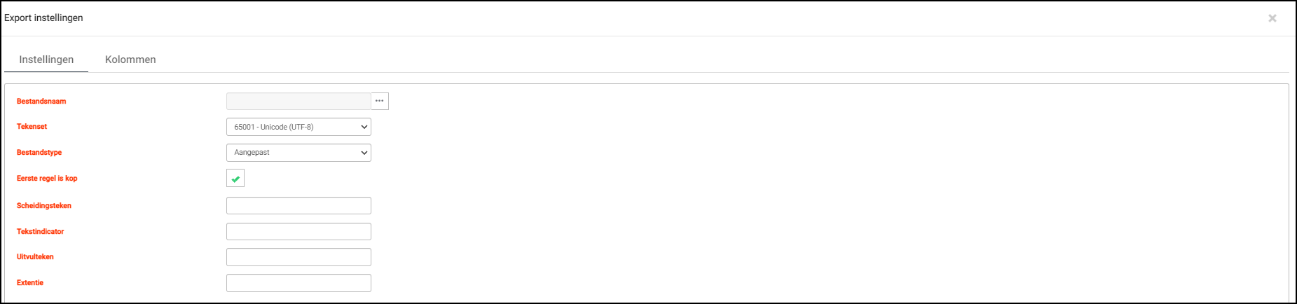 Uitvulteken: In geval in het kolommen tabblad een vaste lengte wordt opgegeven, wordt dit teken gebruikt als voorloopteken. Stel je kiest voor een spatie als voorloopteken. Dan wordt een waarde 123 met vaste kolomlengte 10 → “ 123”.