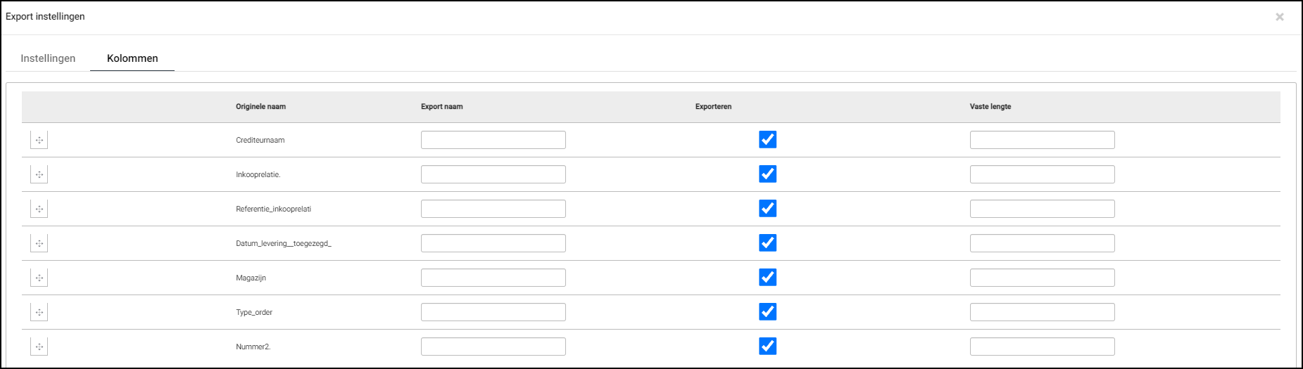 In het vaste lengte gedeelte kan worden opgegeven of de kolomwaarde een vaste lengte moet hebben. Het uitvulteken dat hiervoor gebruikt wordt kan gevuld worden in de “Instellingen” tab.