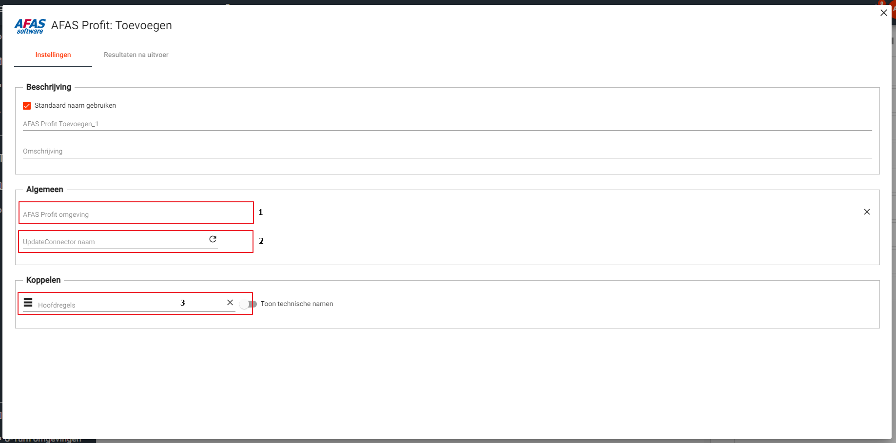 Invoer | Applicatie | AFAS applicatie waar de data naar verstuurd wordt. |