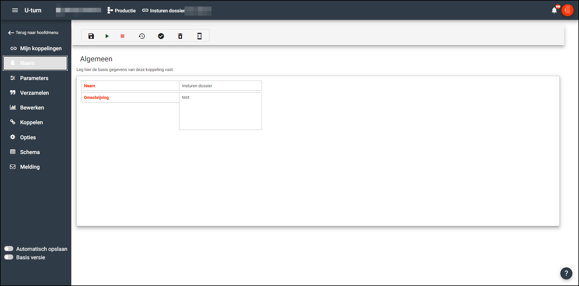 Koppelingen hebben, nadat ze geopend zijn, veelal een zelfde structuur. Links bevind zicht het menu voor de koppeling waar verschillende onderdelen in voorkomen.