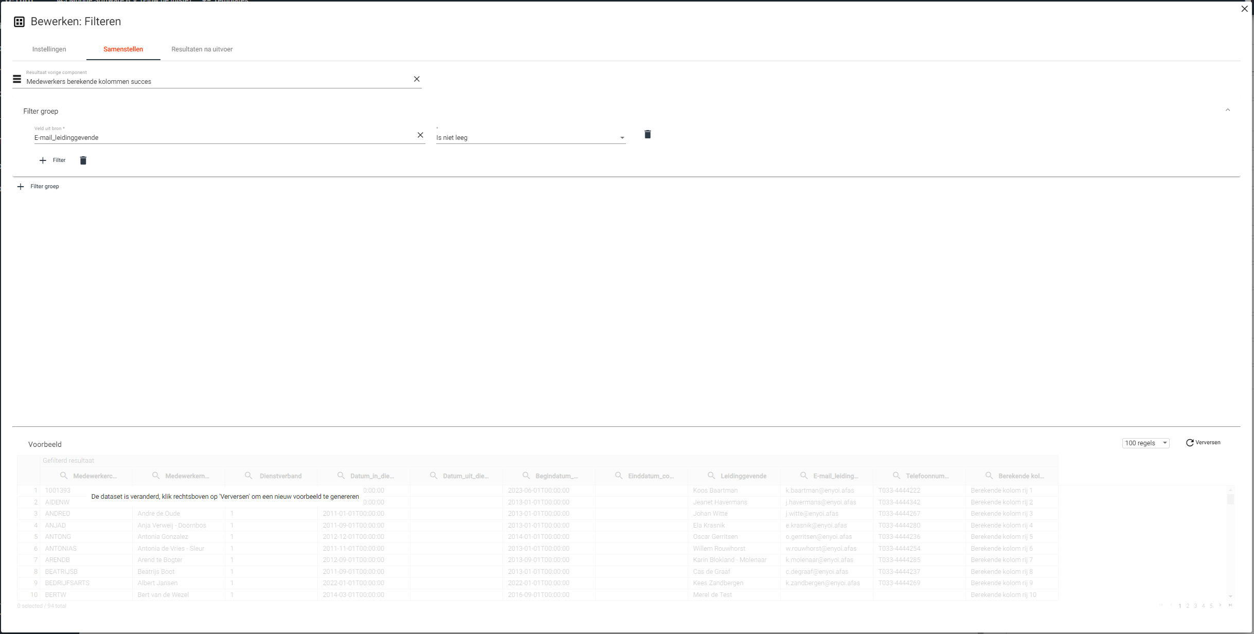 Wanneer je je filter hebt toegevoegd komt de melding in beeld dat de dataset veranderd is. Klik op ‘Verversen’ om de dataset te verversen, hierbij wordt het filter toegepast op je dataset.