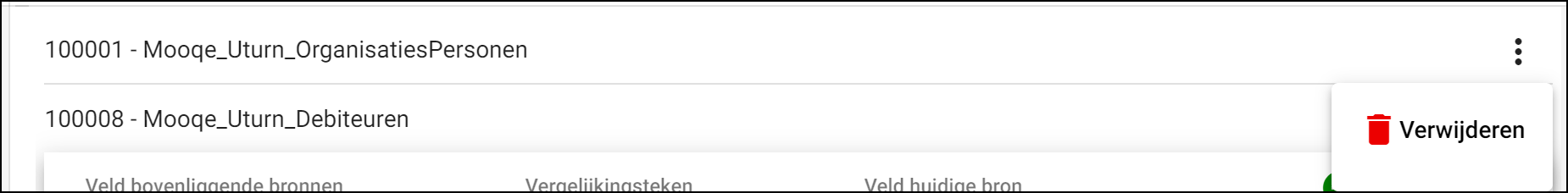 Verwijderen → Deze optie verwijderd de geselecteerde bron uit de dataset. De bron blijft wel als bron beschikbaar om nogmaals toegevoegd te kunnen worden.