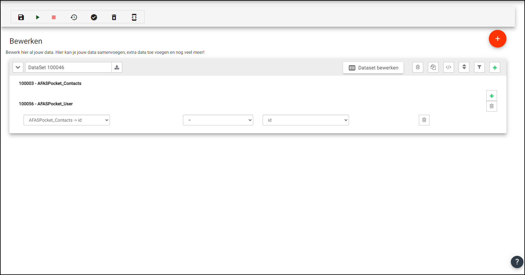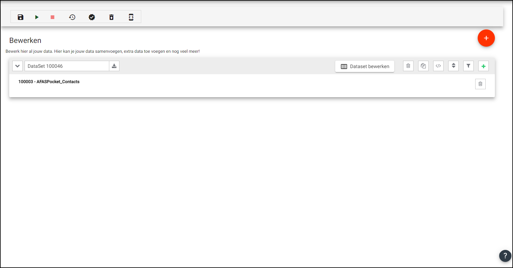 Op de tab ‘Bewerken’ kunnen 1 of meerdere dataset gedefinieerd worden die je in de koppeling wilt gebruiken. Een dataset is een krachtige manier om je data te bewerken.