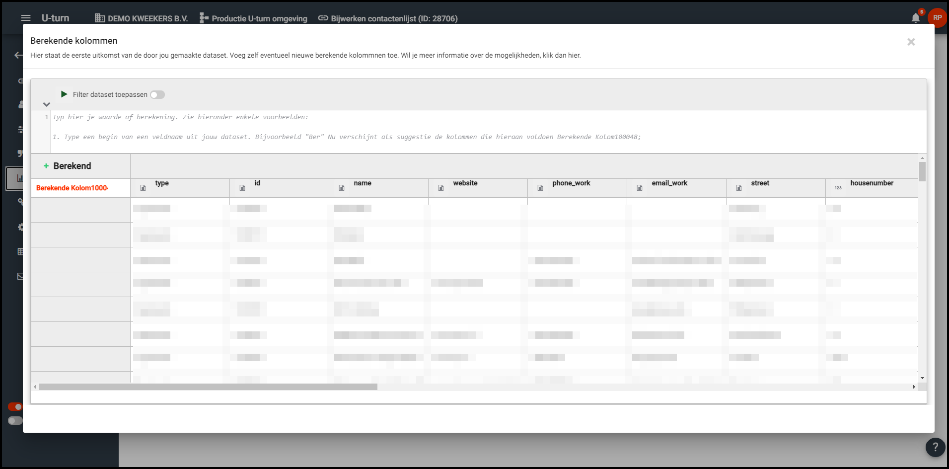 Hier kan je door in de kolom ‘Berekend’ op het plus icoontje klikken om een nieuwe berekende kolom toe te voegen. Een berekende kolom kan van alles bevatten. Zo kan je de kolom een waarde geven op basis van data uit de andere kolommen. Deze checks en andere functionaliteit kan je toevoegen door gebruik te maken van slimme Excel formules of een python script.