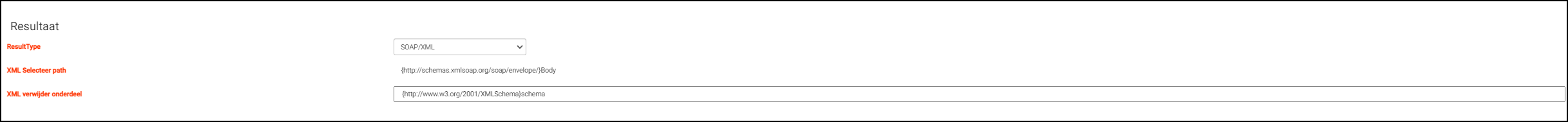 Wanneer het resulttype SOAP/XML is worden de volgende velden getoond: