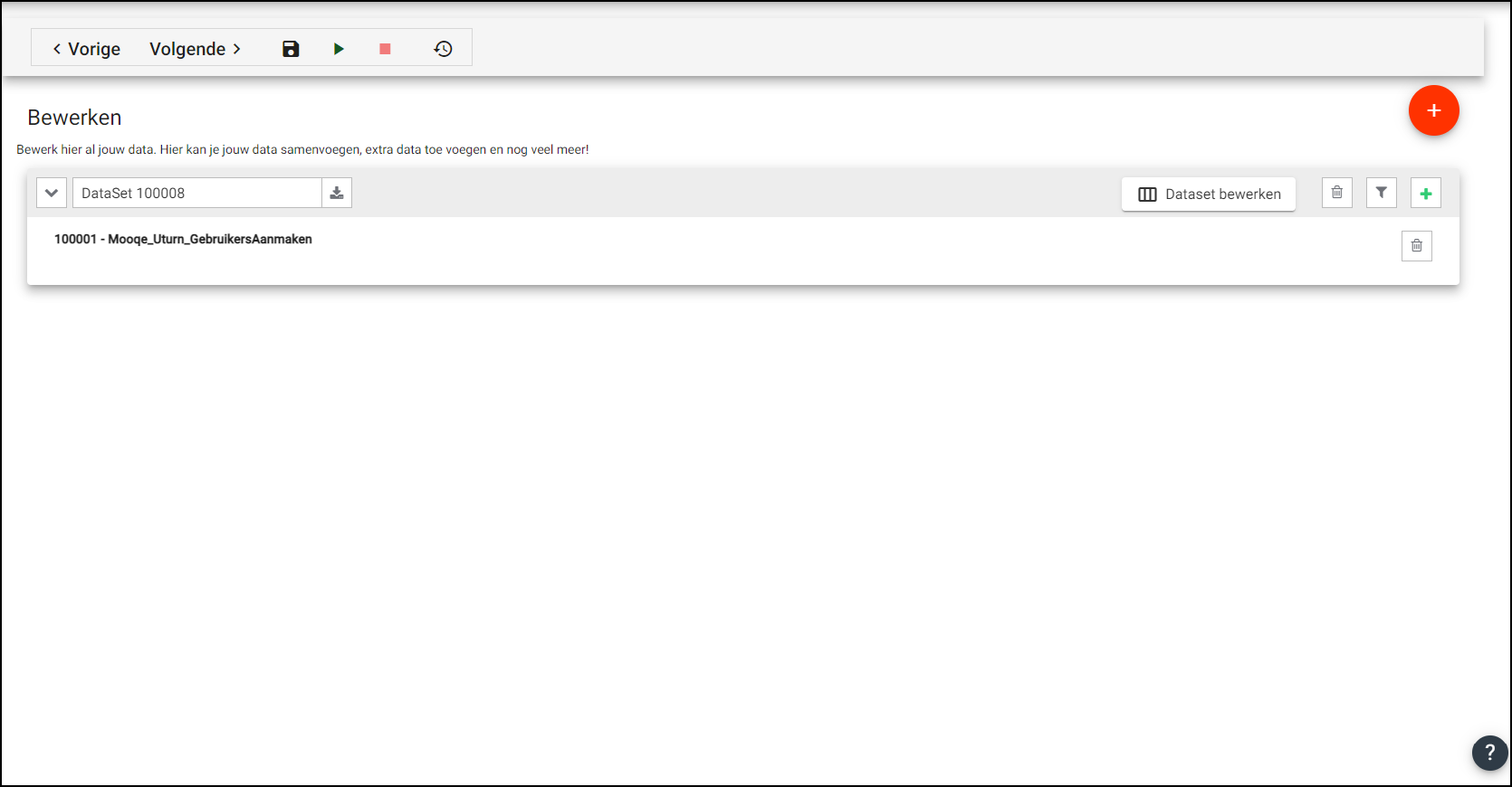 Ga naar ‘Bewerken’ en klik rechts boven op het plusje in de rode cirkel. Voeg hier je dataset toe die je ophaalt met je GetConnector.