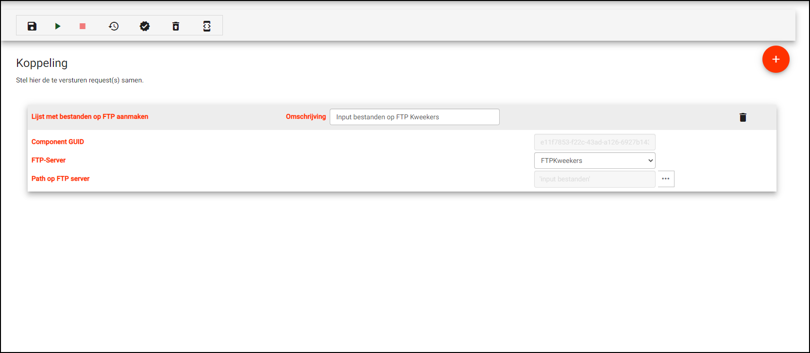 Wanneer je dit component gebruikt zul je bijna altijd ook het component Maak bestand op FTP (SendFileToFTP) gebruiken om de lijst als bestand op een FTP locatie op te slaan. Dit bestand kun je dan in een andere koppeling weer als input gebruiken.