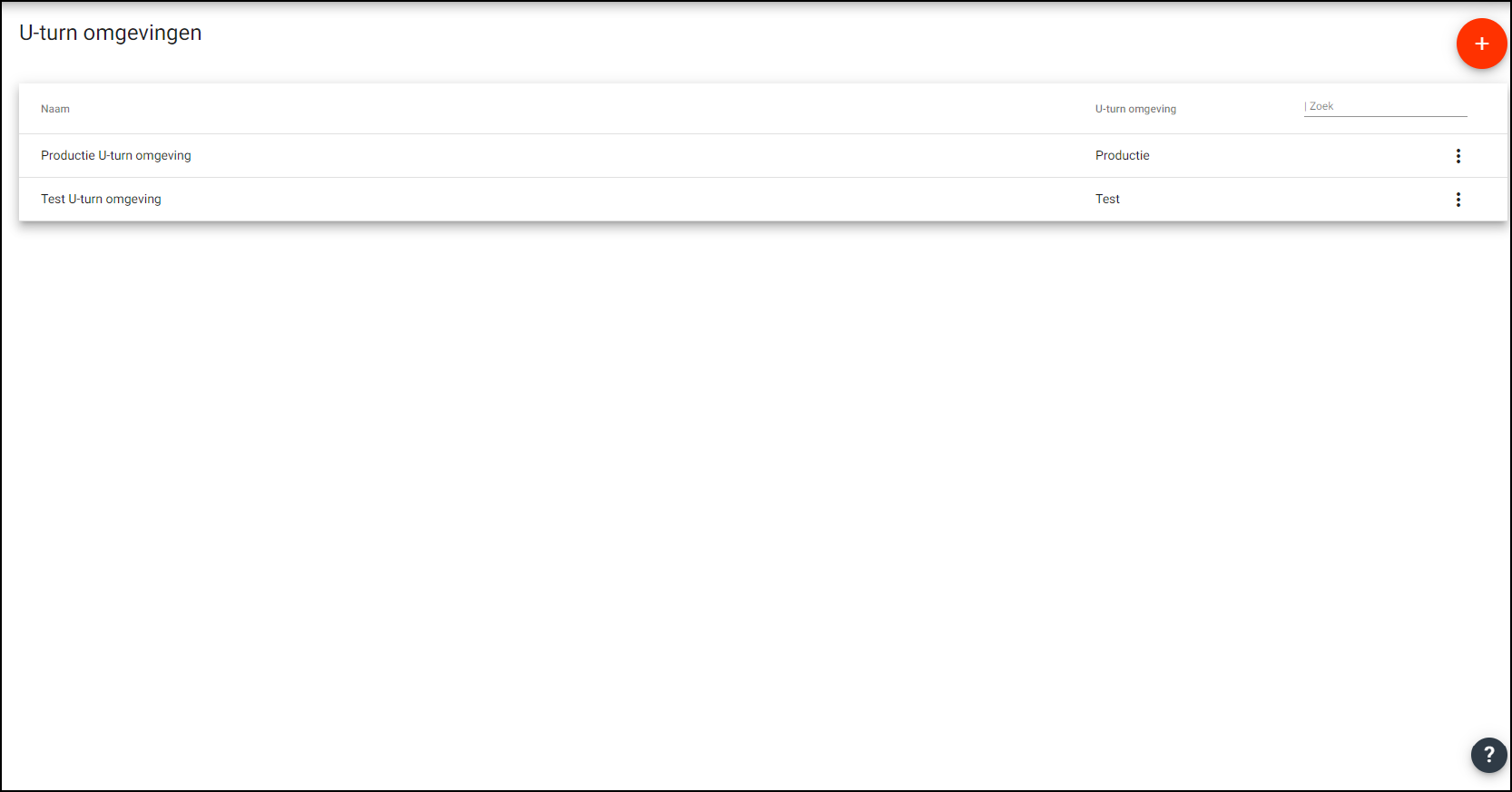 Binnen een organisatie in U-turn kun je 1 of meerdere omgevingen tot je beschikking hebben. Denk hierbij bijvoorbeeld aan een test-, acceptatie- en/of productie-omgeving.