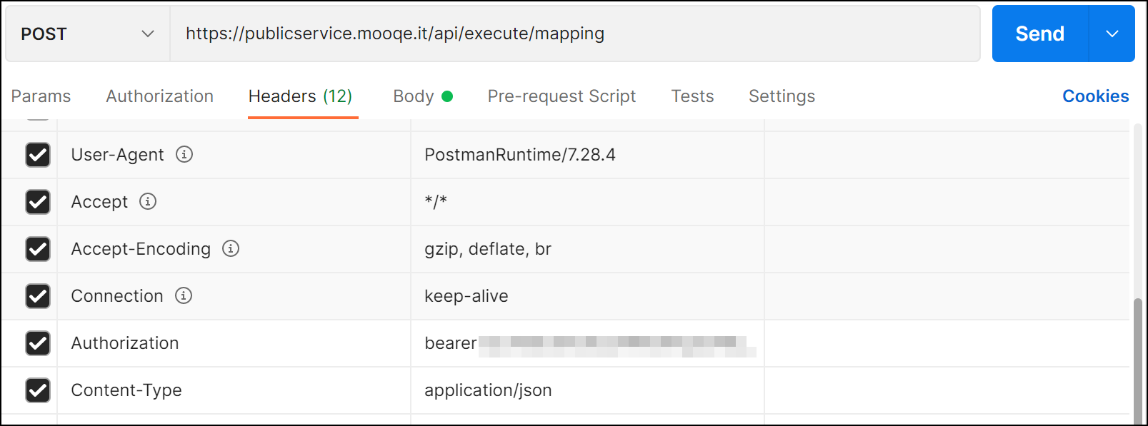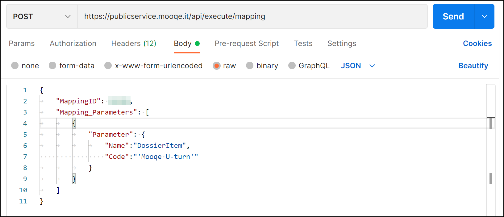 In de body moeten het nummer van de koppeling zitten en eventueel de parameter waarden. Deze parameter waarden overschrijven de waarden in de koppeling en de koppeling zal met deze waarden worden uitgevoerd.