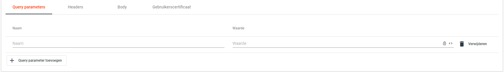 Klik op de '+ Query parameter toevoegen' knop om een nieuwe query parameter toe te voegen.