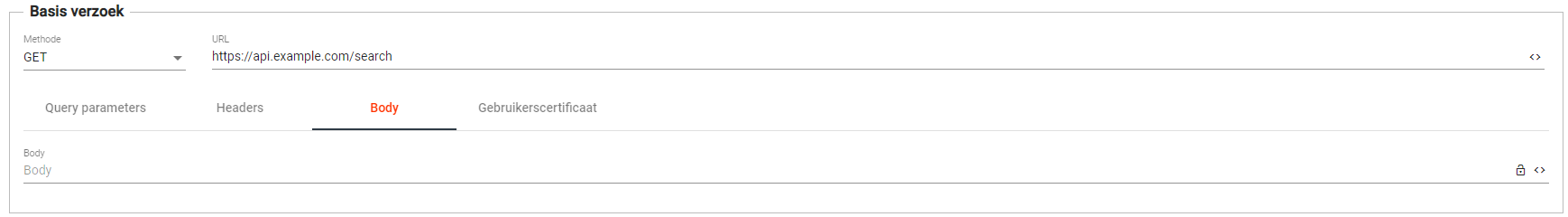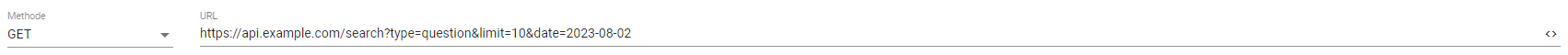 De methode bepaalt de actie van het HTTP request. Haal je data op? Dan gebruik je in de meeste gevallen GET. Voor het versturen van data wordt meestal PUT, PATCH of DELETE gebruikt. De mogelijkheden voor dit veld zijn GET, POST, PUT, DELETE, PATCH, HEAD, OPTIONS en TRACE.